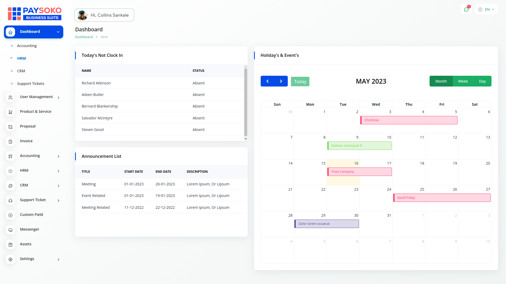 PaySoko Business Suite offers a wide array of features, each tailored to enhance different aspects of your business. Discover the power of a unified platform that brings together project management, accounting, HRM, CRM, and POS functionalities.