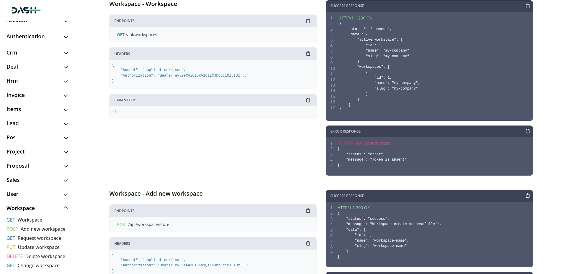 It includes a variety of useful commands in order to control your WorkDo Dash installation remotely, build third party connections and access WorkDo Dash information in real-time!